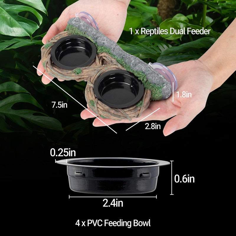 REPTI ZOO Dual Gecko Feeder Ledge, Reptile Hollow Vine Food Feeding for Bearded Dragon Lizard Snake Turtle, Reptile Water Feeding with 4 PCS Bowl, Reptile Dish Terrarium Tank Decor Accessories