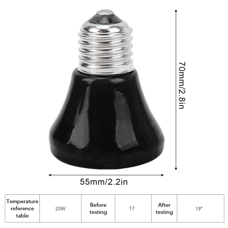Reptile Ceramic Heating Lamp for Heat Preservation - Pig Lizard Lamp With Durable 25W Black Ceramic Heat Source