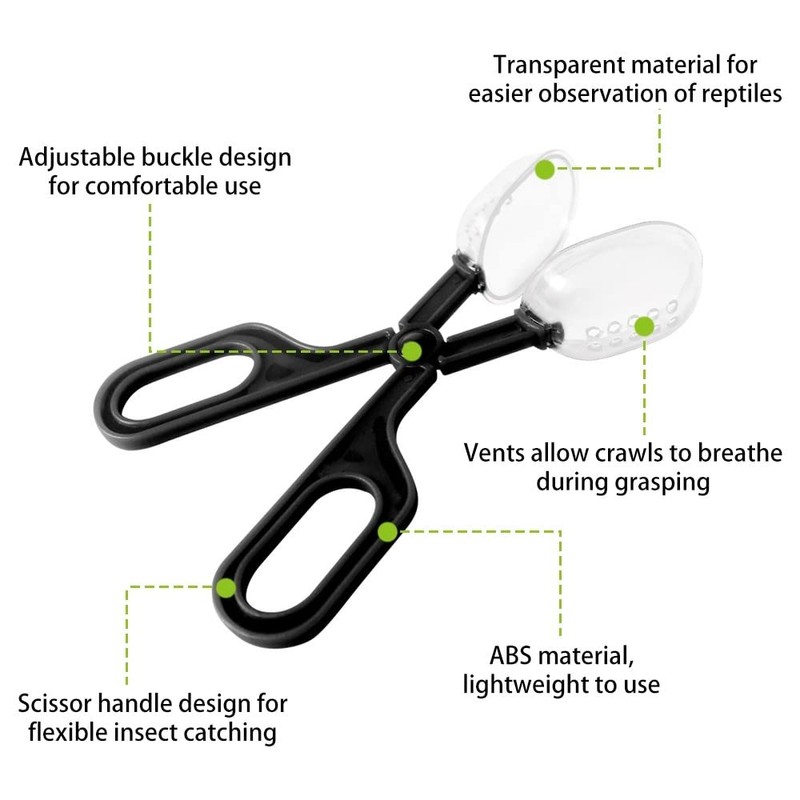 1. EASY TO USE The reptile clip lining is made of transparent material, with air vents, easy to observe reptiles, transparent bubble shell design, ventilation, reptiles can breathe when grabbing.