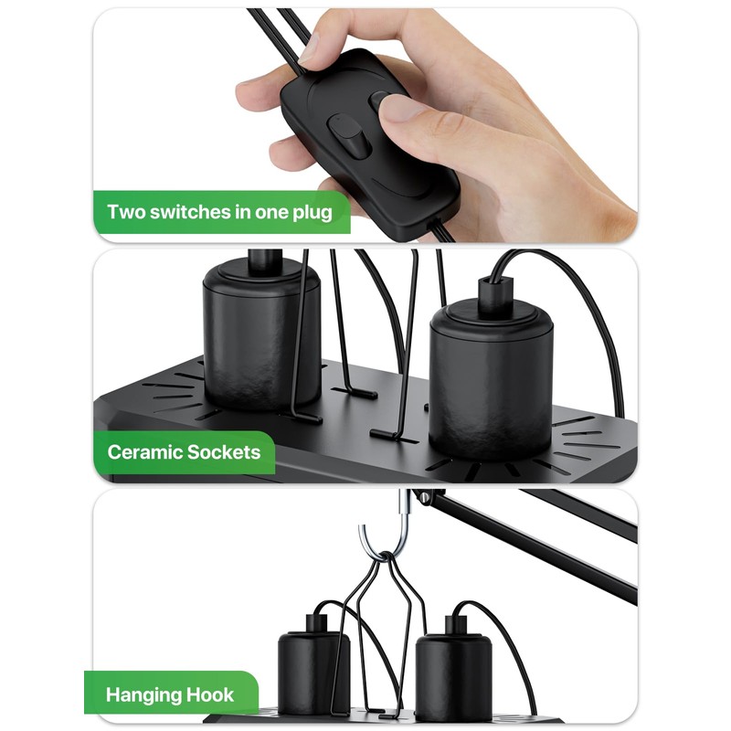 LURMMUE Dual Dome Reptile Lamp Fixture - for Heat Lamp & UVB Bulb (Max 100W Each) - with Reflector Design for Bearded Dragons, Turtles, Snakes & Lizards - 8.1 Inches