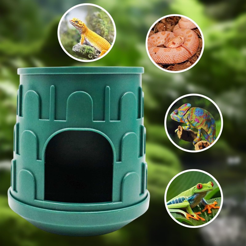 Transform your gecko's habitat with this innovative 2-in-1 green plastic hideout and feeding station. The clever design features a secure hiding spot underneath and a convenient feeding bowl on top, maximizing your terrarium space while providing essential functions. The hideout offers your reptilian friend a cozy retreat for rest and security, while the integrated bowl above serves as an accessible spot for food or water. This practical combination is perfect for gecko owners looking to create an organized habitat setup. The durable plastic construction makes cleaning and maintenance simple. The compact design helps create a more spacious environment in your terrarium while ensuring your gecko has both a reliable shelter and feeding area. Ideal for various gecko species, this multi-functional piece helps create a comfortable living space for your scaly companion.