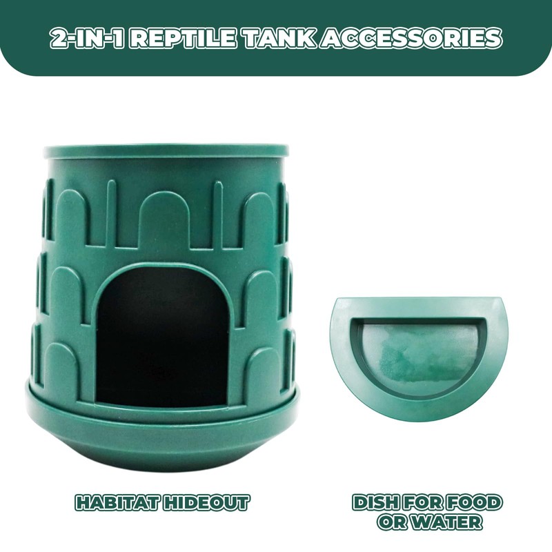 Reptile Tank Accessories, 2-in-1 Plastic Reptile Hide with Bowl on The Top, Habitat Hideout for Gecko, Snake, Chameleon and Other Small Arboreal Reptiles