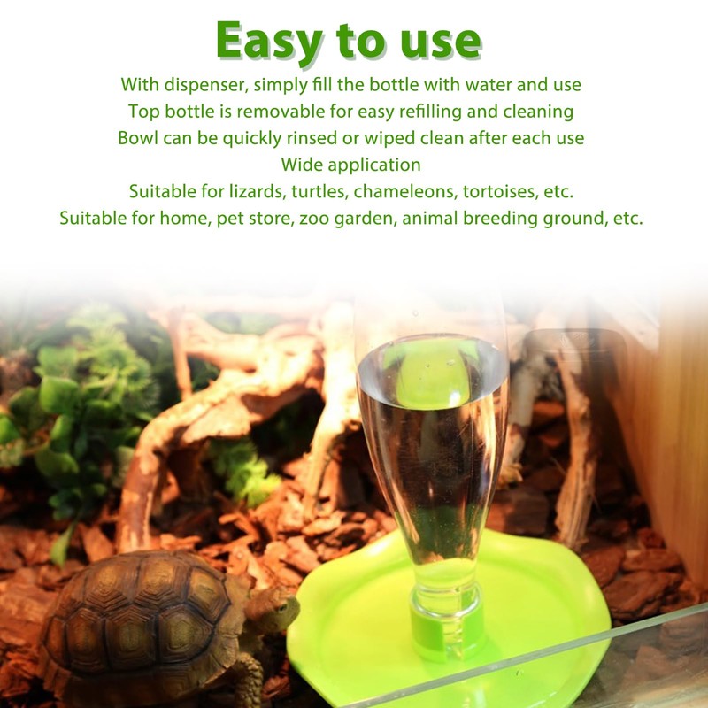- Wide application: the water dispenser bottle for reptiles is suitable for lizards, turtles, turtles, etc. Suitable for home, pet stores, zoo gardens, pet feeders, etc.