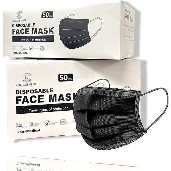 REQUISITE NEEDS REQUISITE NEEDS Face Mask Black Disposable for Adults, Disposable Breathable Face Coverings, Face Masks Breathable,3 Layer Face Masks | Suitable For Sensitive Skin (Black) (100 PACK)