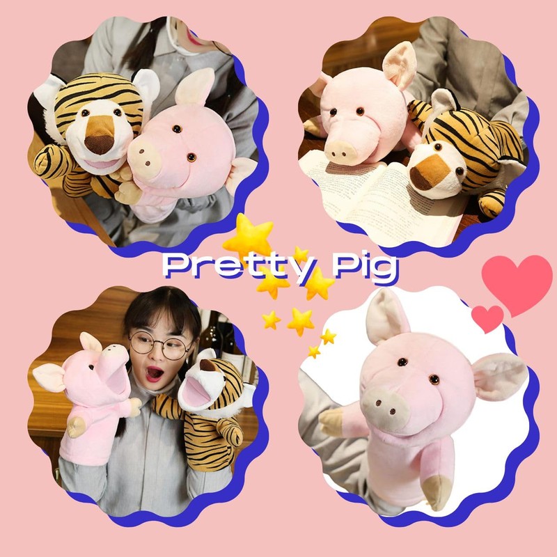 RERACO Hand Puppet Animal Shark Pig Dinosaur Duck Plush Pig Mouth Moving Doll Puppet Doll Puppet Muppet Puppet Puppet Theater Animal (Pog)