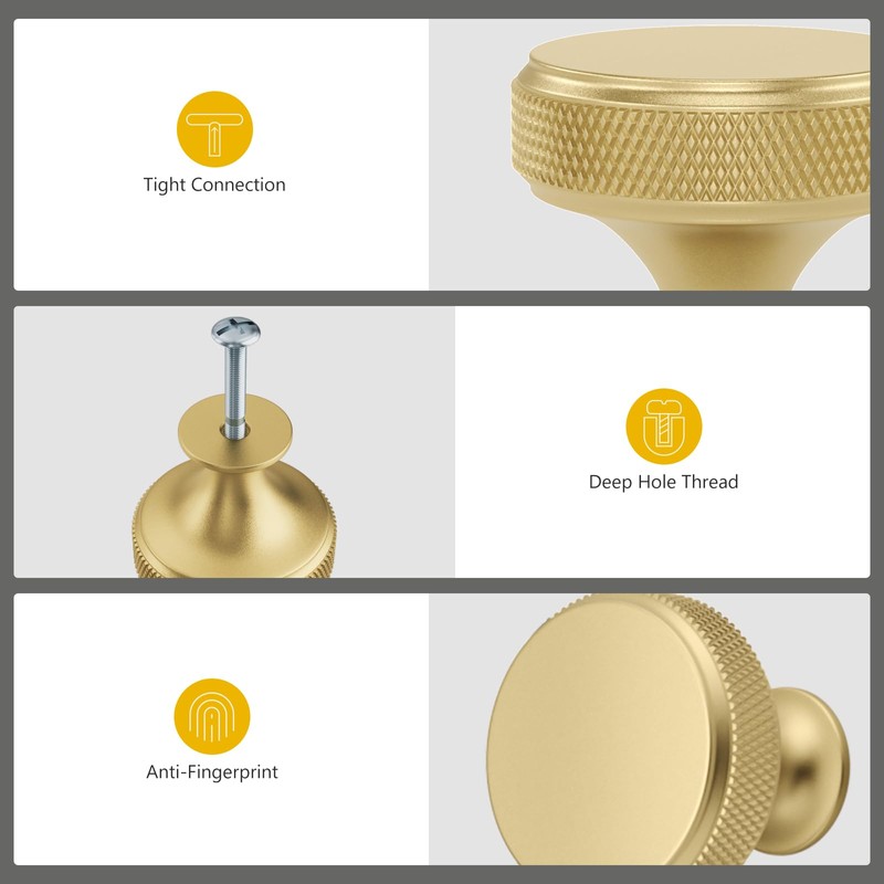 - 【Premium Material】Rergy gold cabinet knobs are made of high-quality aluminum alloy. Sturdy and durable, these kitchen cabinet knobs ensure long-lasting performance after easy installation