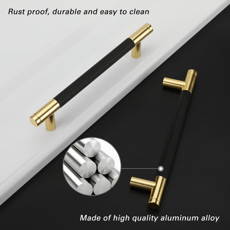 Rergy Cabinet Handles Knurled Drawer Pulls and Knobs 30Pack Black&Rose Gold 5inch Hole Center Kitchen Hardware for Dresser Oxidation Finish with Diamond Pattern