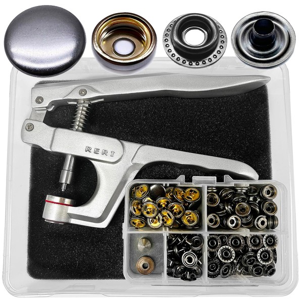 RERI Press Studs with Pliers 12.5 mm Black Press Studs for Leather Craft Jacket Handbag Wallet