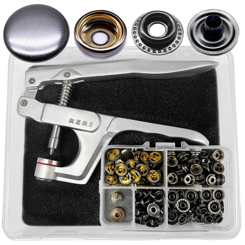 • Set of 40 black diameter 12.5 mm press studs and 1 set of setup pliers and adapter