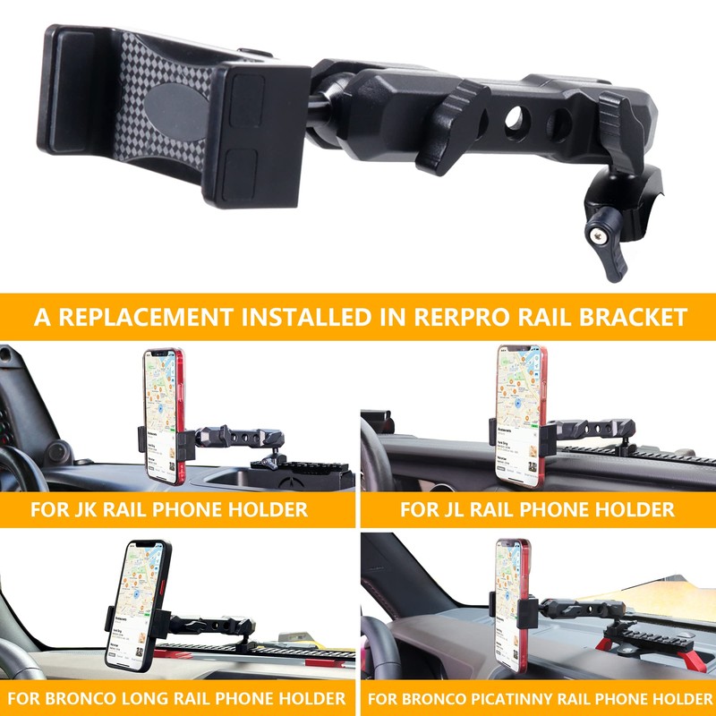 - APPLICABLE RAIL BRACKET: A phone mount replacement fits our store item, for 2012-2018 Jeep Wrangler JK B0BCP4TPH8, for 2018-2023 Jeep Wrangler JT Gladiator JT B09XMQ1MV7, for 2021-2024 Ford Bronco B0BL2TN6J4 B0BD74XSC4 B0B24ZL7RF