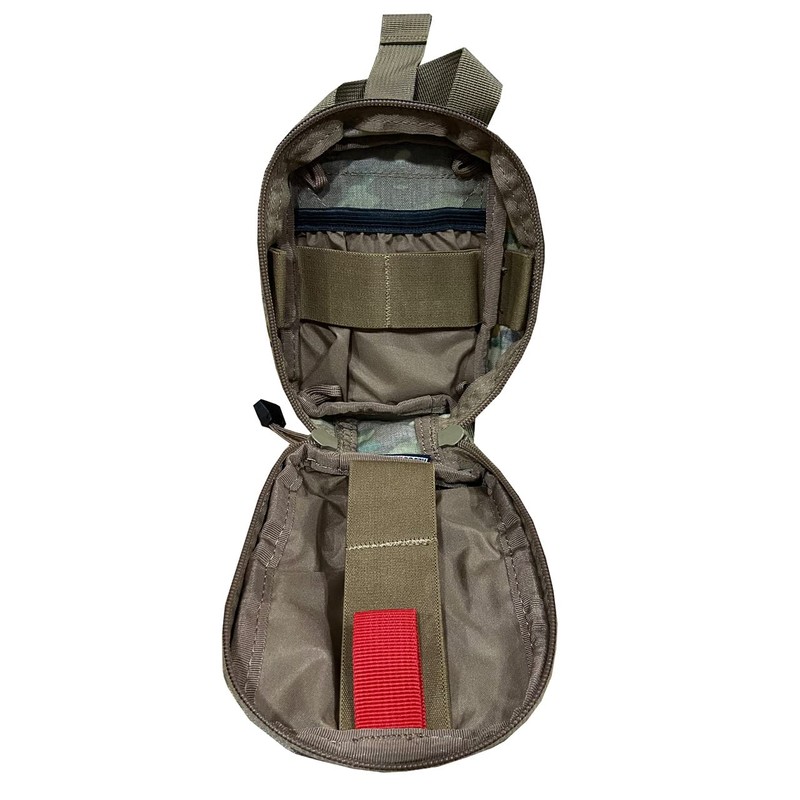 This is a favored configuration for IFAKs carried by several Government agencies' personnel, because of its size, versatility and rugged construction. The internal organization is outstanding, and external webbing allows numerous accessory attachment options, including compatibility with our Tourniquet Holder. This pouch has carrying capacity that belies its small size. Various possible configurations include treatments for traumatic bleeding, airway issues, pneumothorax and more. Full-area hook and loop back panel allows instant detachment from belt of pack for "throw and go" applications.