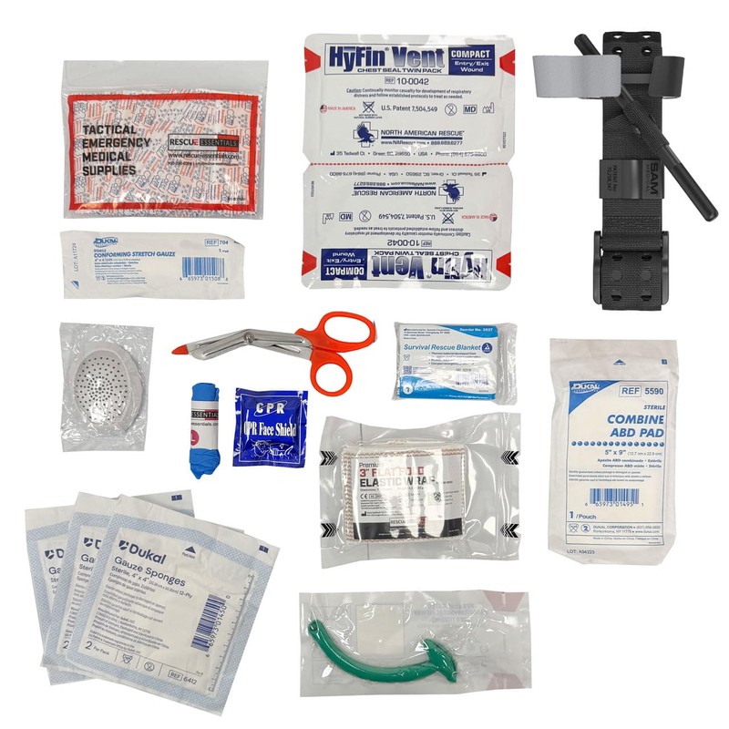 - Kits are built in the Rescue Essentials Flat IFAK Pouch.