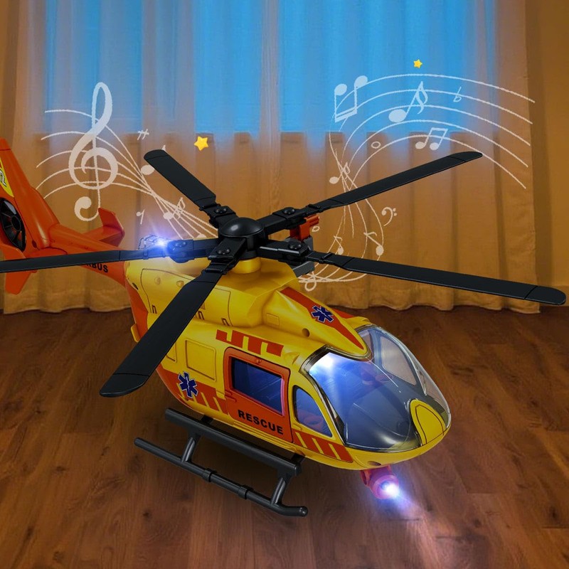 - Toy Features: Includes an automatic rotating propeller and is foldable for storage. The double doors and rear cargo door can be opened. Pressing the button on the bottom of the helicopter activates the lights and realistic sounds, making role-playing games more exciting for children.