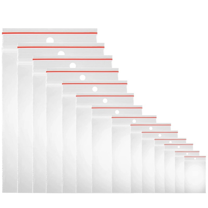 Resealable Clear Ziplock Bags with Holes | Plastic Bags | Sealing Bags | Food Bags | 27 Sizes to Choose From (100 Pieces, 200 x 300 mm)