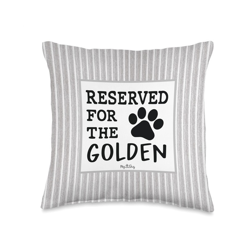 - Does your Golden have a favorite seat in the house? This funny Golden Retriever pillow features the Text Reserved For The Golden.