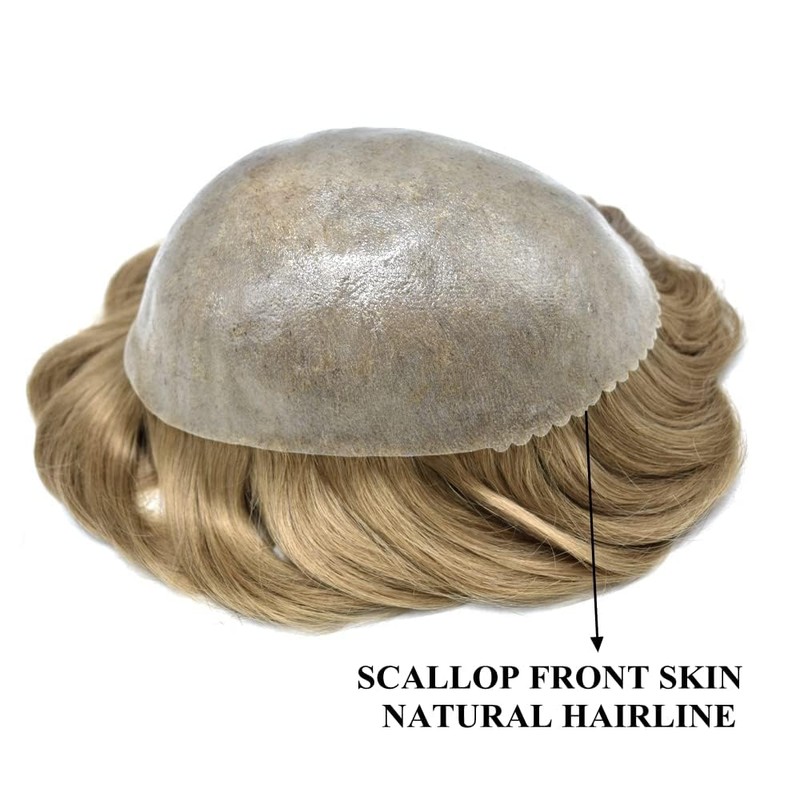 - Product Features: Full Poly Base, Thin Skin Injected PU, Durable Thickness 0.1-0.12mm.Mens Toupee Can be cut down to any size. Invisible Hairline.Human Hair Replacement System Easy to Wear with Tapes or Glue, it will feel very comfortable and invisible, you can easily apply.