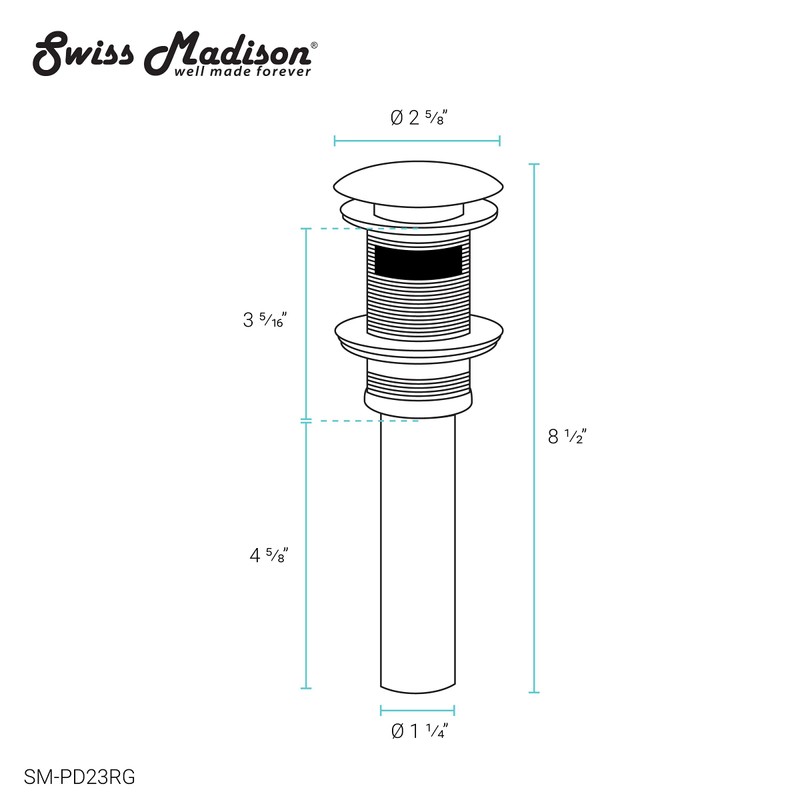 Residential Pop Up Sink Drain 1.75" in Rose Gold