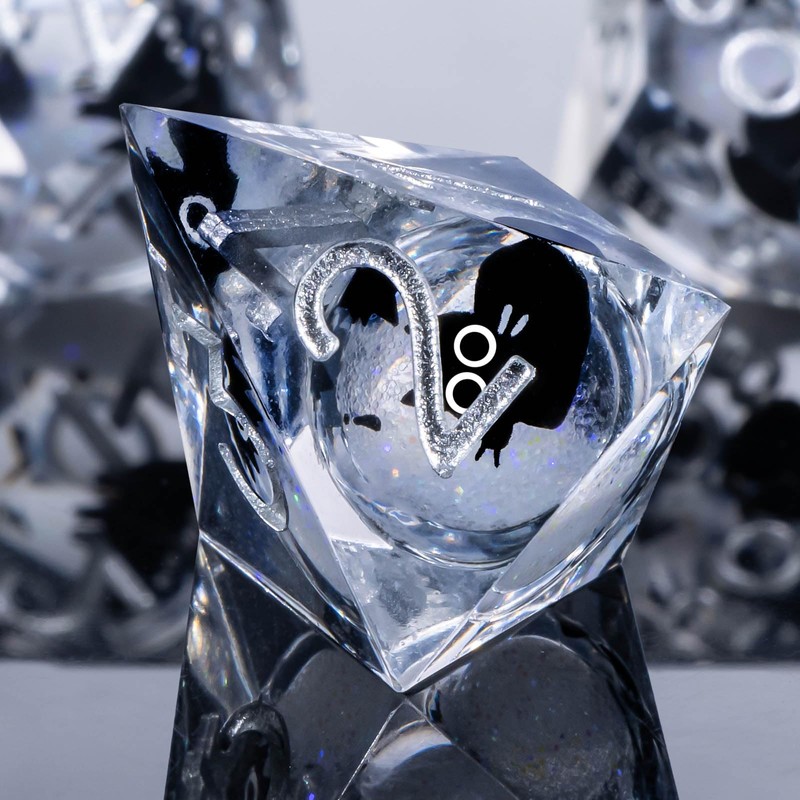 Roycevon Resin DND Dice Set with Gift Box, 7Pcs Liquid Core Cat D&D Dice, Cute Dungeons Dragons D and D Dice, Sharp Edge Role Playing Game Dice D20 D12 D10 D8 D6 D4, White