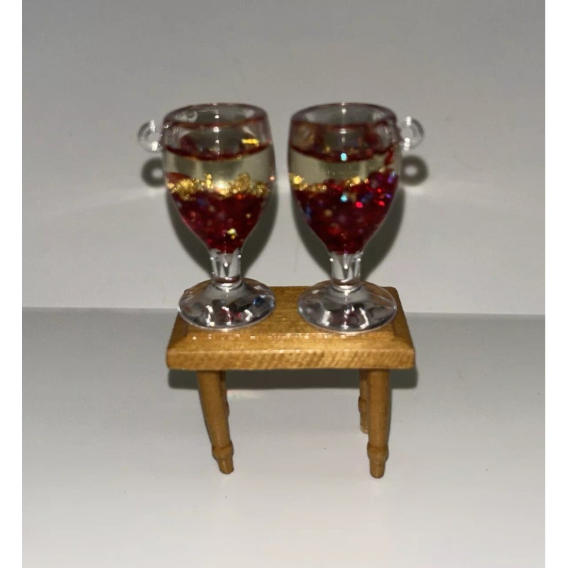 Resin Red Glitter Filled Wine Glass Charms Set Of 2