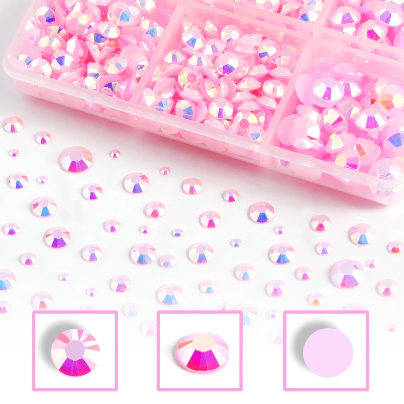 ELEEGEM Resin Rhinestones Kit for Crafts,8400 pcs Light Pink AB Jelly Flatbac...