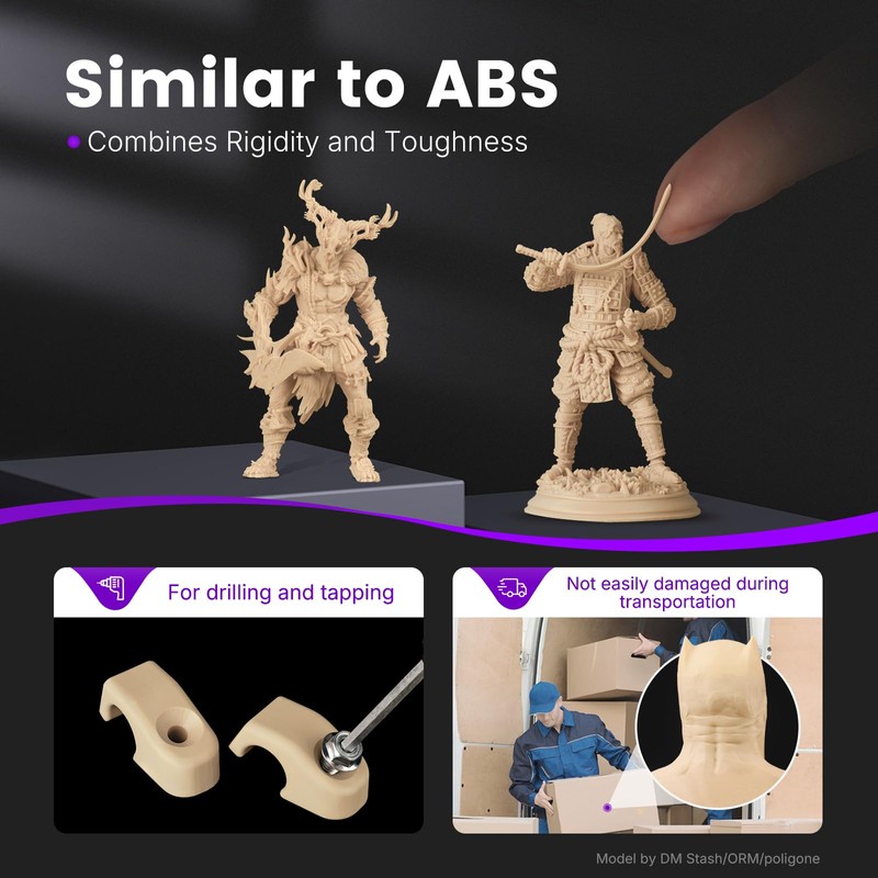 - Rigid and tough, resistant to damage: This resin offers mechanical properties similar to ABS, providing excellent strength. Models printed with this resin serve as durable masters for liquid silicone molding, reducing the risk of breakage during mold opening and part removal. It ensures delicate features like raised hair strands, ears, and other thin or elongated structures on head sculpts stay intact during transport
