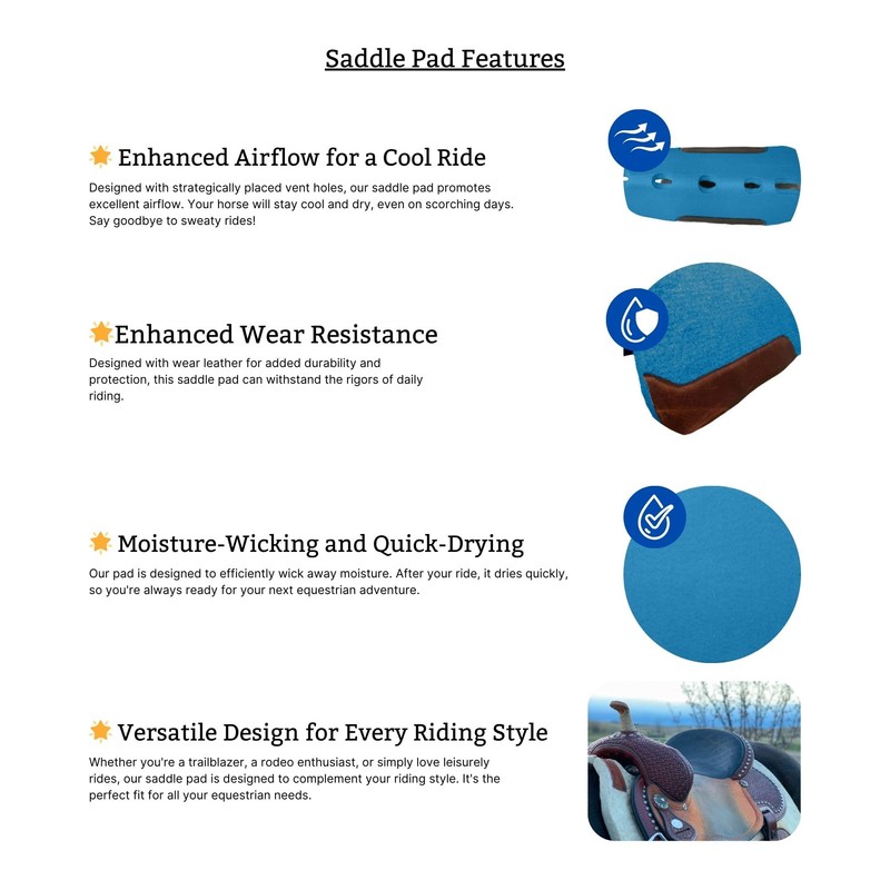 - ABSORB MOISTURE: The synthetic felt soaks up moisture allowing heat to dissipate away from saddle pad