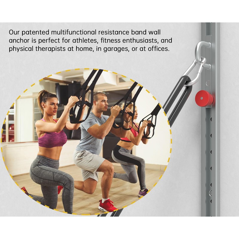 - Versatile Exercise Hub: Revolutionize your fitness routine with this multi-functional resistance band wall anchor. Unlock over 100+ exercises for full-body conditioning, strength training, and dynamic stretching. Whether targeting muscle groups, enhancing flexibility, or supporting physical rehab, this wall anchor for resistance bands adapts to Pilates, suspension training, and high-intensity workouts – all from the comfort of your home.