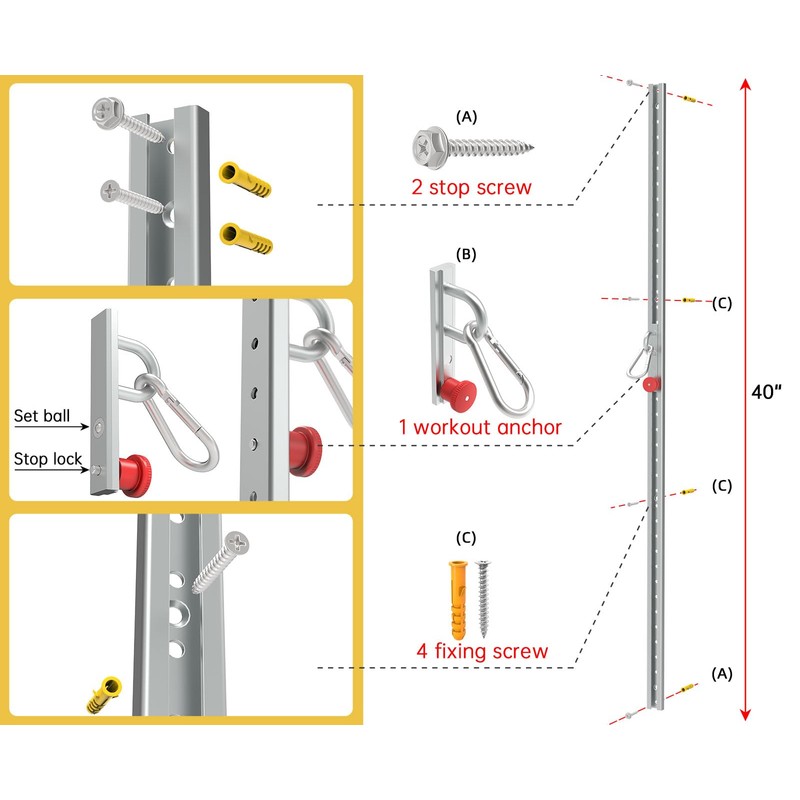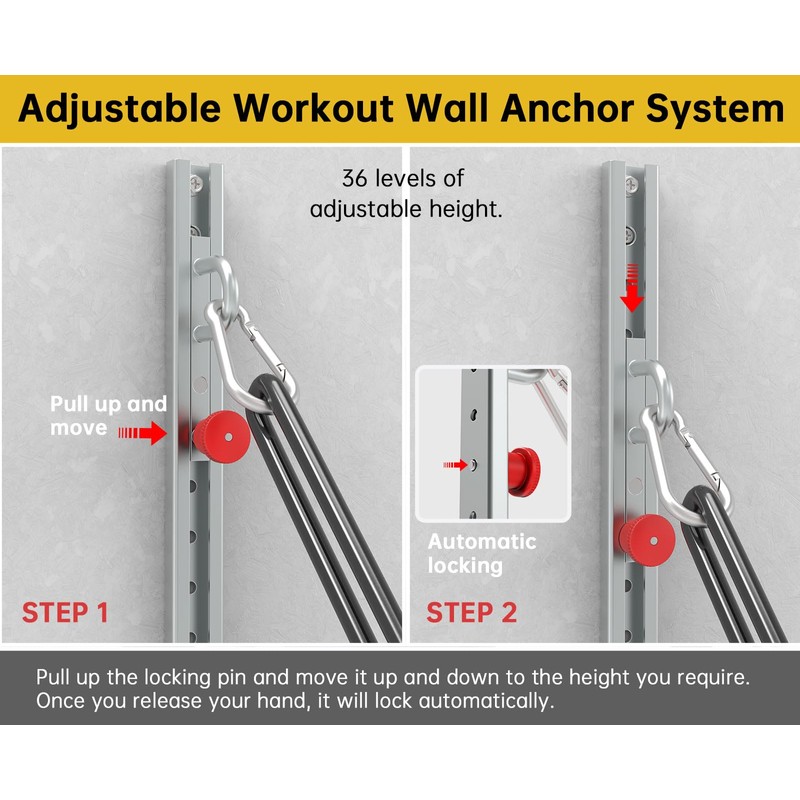 - Customizable Training Precision: Tailor every session with 38 adjustable locking positions on the single rail system. This smart resistance band wall mount accommodates users of all heights and workout styles, seamlessly transitioning between strength-building exercises, dynamic warm-ups, and recovery protocols.