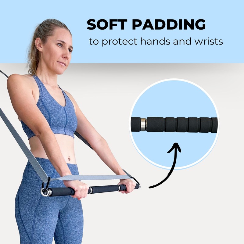 - GENTLE ON WRISTS AND HANDS: Soft padding on the bar for comfortable workouts, and easier on wrists than using bands alone.