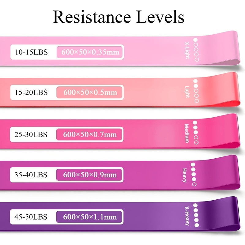 • 5-Level Resistance Set: Includes X-Light, Light, Medium, Heavy, and X-Heavy bands ( 10-50 lbs resistance) for customizable workouts, ideal for beginners, advanced users, and recovery training.