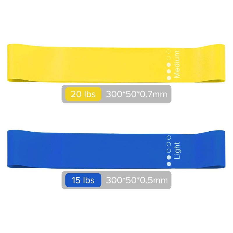 - Adjustable Resistance Bands,- Comes as 2 pack of exercise bands: Blue(15lbs), Yellow (20lbs), the bands can be used independently or in any combination.