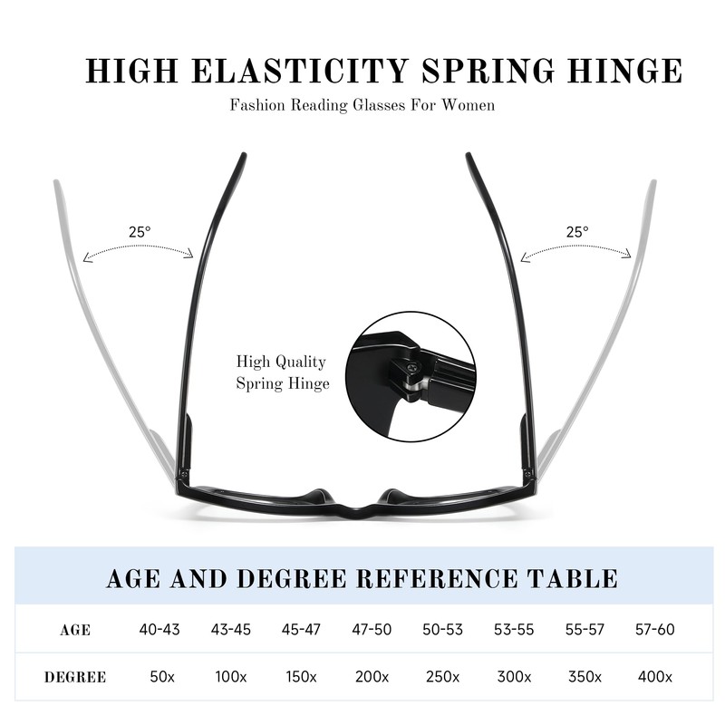 • 【High Quality Reading Glasses】The adjustable spring hinge design and high-quality frame ensure a comfortable fit, making it suitable for different facial shapes while reducing head pressure. Fashionable optical quality glasses with unique lens clarity,make your vision shine brightly.