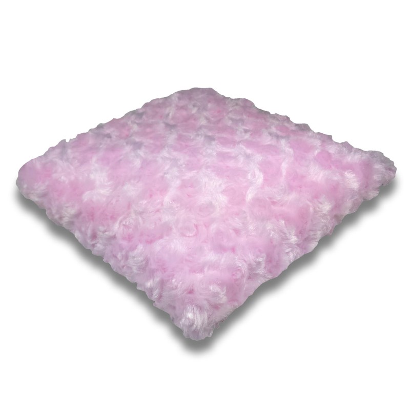 The rosebud fleece fabric is very unique in that it is covered with rolls of translucent fabric coiled into the shape of tiny rosebuds. This makes the pillow surface fluffy and soft. See the fabric closeup photo to see the details.