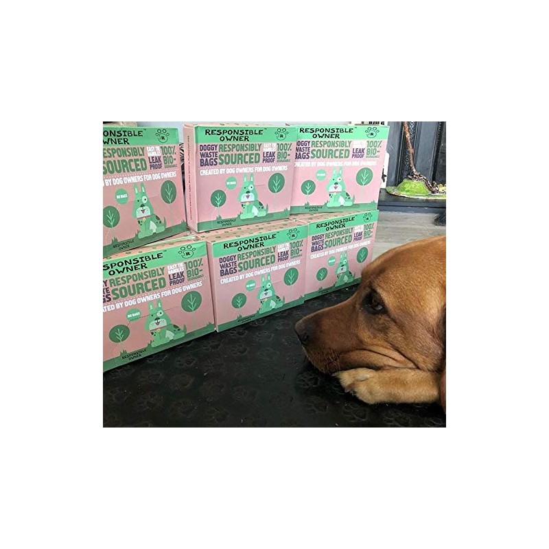 Responsible Owner Dog Poo Bags, 80 Environmentally Friendly, Extra Thick, Super Strong, 100% Biodegradable Dog Bags, With Easy-tie Handles, Leak-proof, Each Dog Poo Bag Measures 17 x 37cm,Earth Green