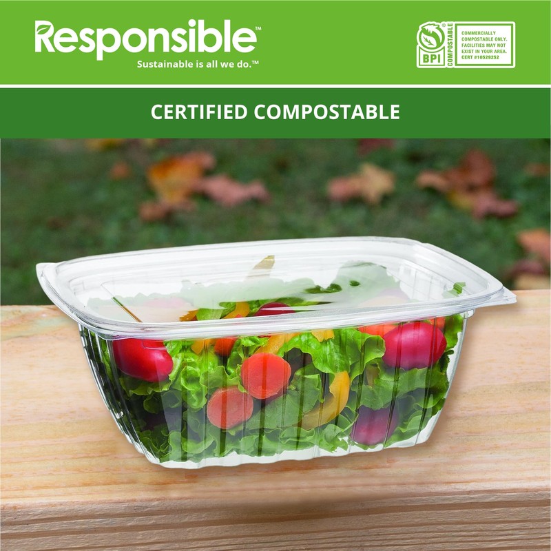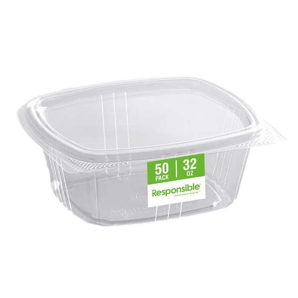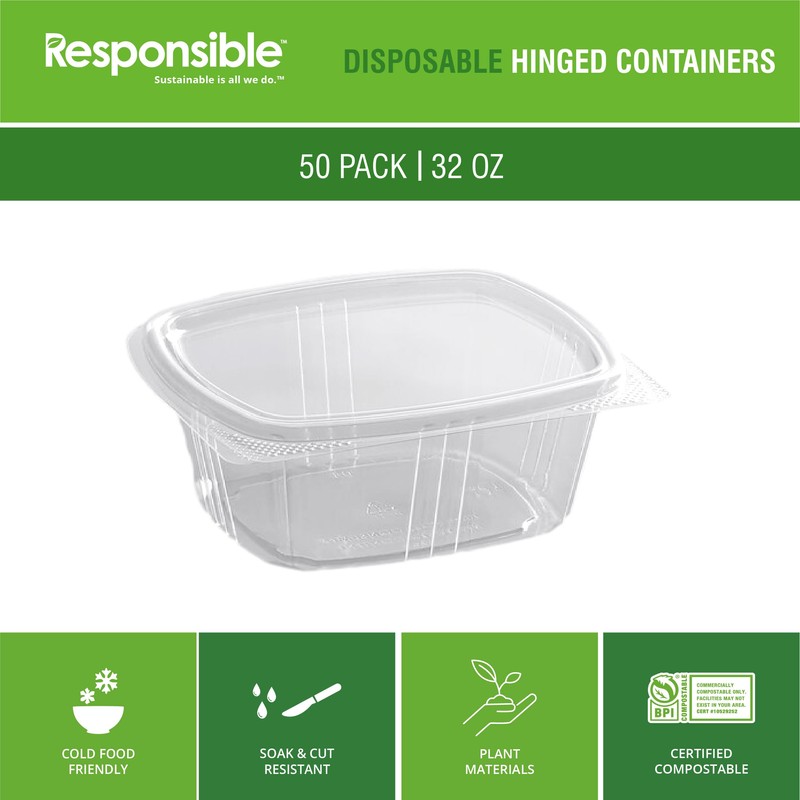 Responsible Products 32 oz Clear Hinged Deli Container, Certified Compostable and Made from 100% American Biobased Materials, No-PFAS Added & BPA-Free (50 Count)