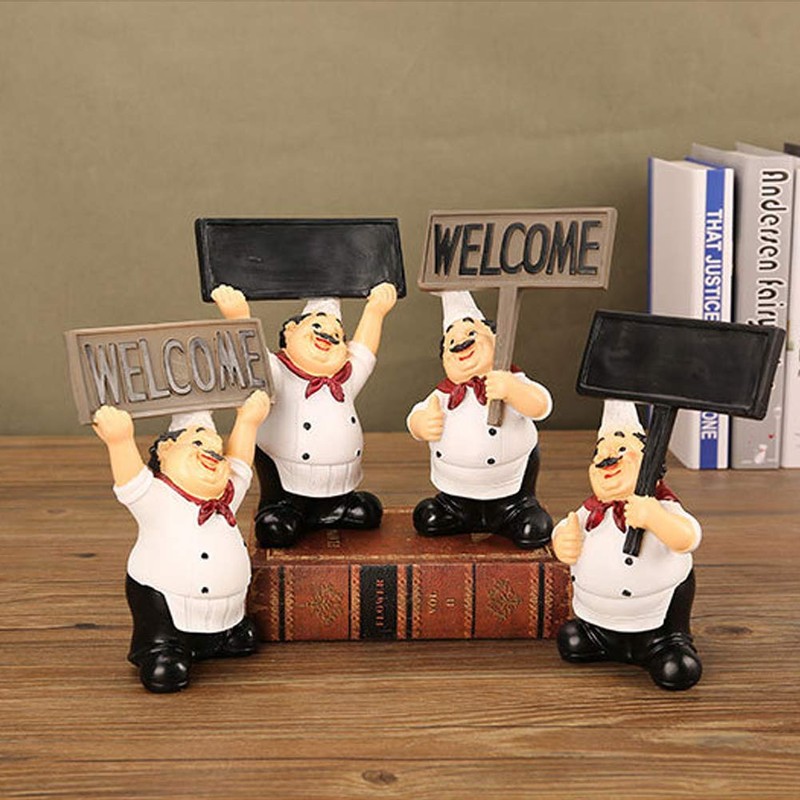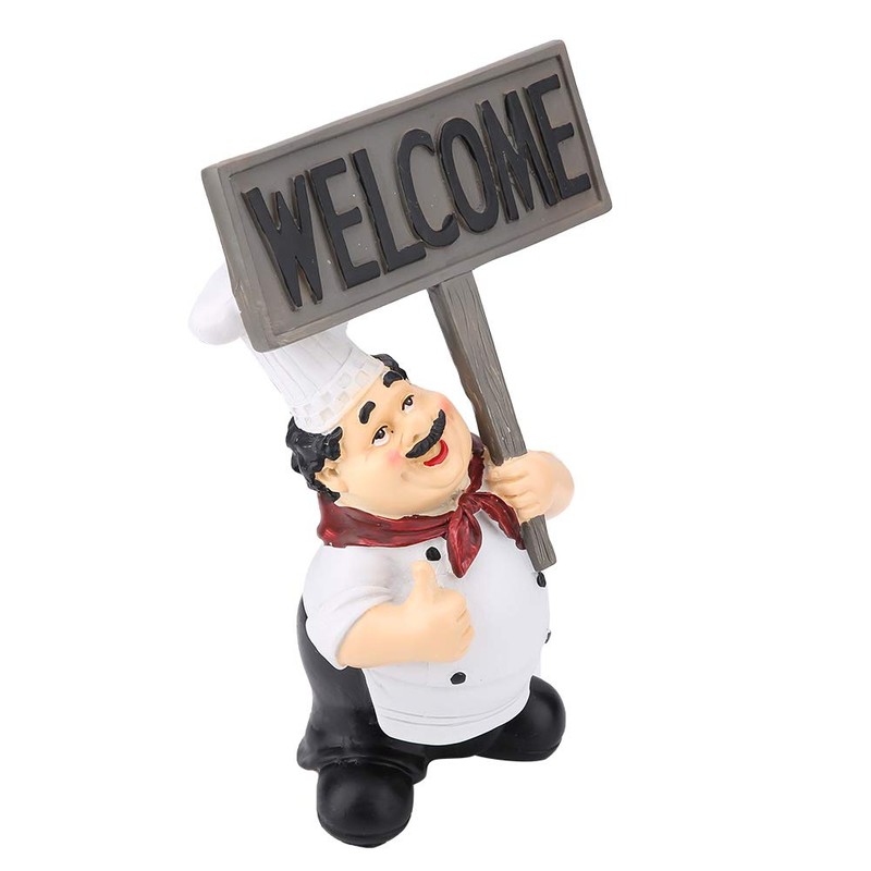 Restaurant Chef Decoration,Miniature Euramerican Resin Cook Statue Welcome Board Table Decor, Refrigerator Table Centerpiece Cute Figurine Stand Display Ornaments