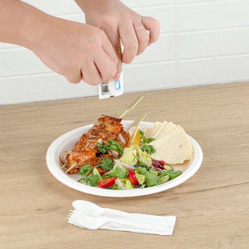 • ALL-IN-ONE PACK: Each cutlery set comes with a 1-ply napkin and salt and pepper packets, providing a total, convenient, and clean dining solution for meals on the go for restaurants.