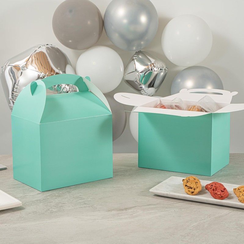 • STYLISH LOOK: Featuring a turquoise finish, these gable boxes for party favors provide a sophisticated yet elegant look to your gifts. Customize the surface with your personalized branding or designs.