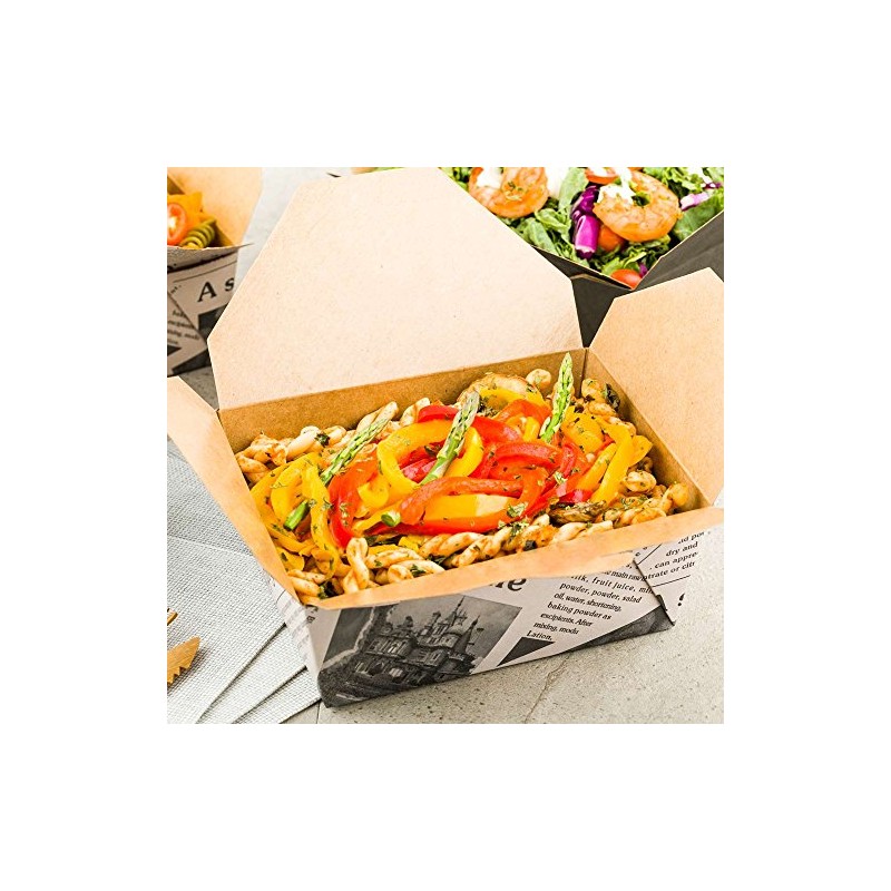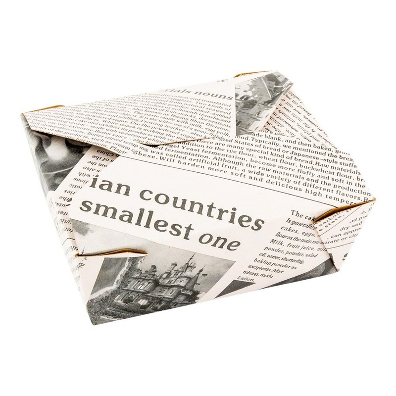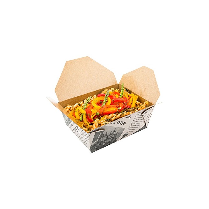 - SIZED RIGHT: This #1 size container measures 5.1"L x 4.1"W x 2.6"H and has a capacity of up to 30 ounces. Plus, these eye-catching newsprint takeout boxes are suitable for hot and cold foods!