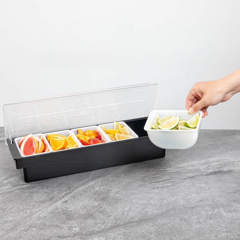 • VERSATILE USE: Perfect for holding cocktail garnishes or freshly sliced fruit, these condiment caddy inserts fit perfectly behind the bar or at the front of your buffet. Elevate your serving game!