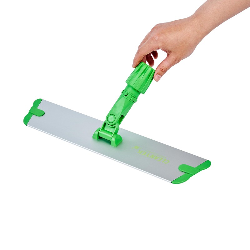 Restaurantware Clean Tek Professional 15.7 Inch Flat Mop Plate Frame, 1 Quick Connect Mop Frame for Wet Or Dry Mop Pads - Mop Pads Sold Separately, Durable, Green Aluminum Cleaning Mop Pad Frame