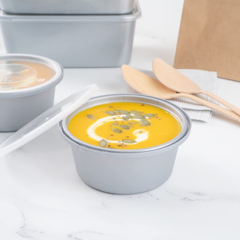 Restaurantware Futura 8.5 Ounce Meal Prep Bowls With Lids 100 Tamper-Evident To Go Bowls - Microwavable Disposable Silver Plastic Food Containers With Lids