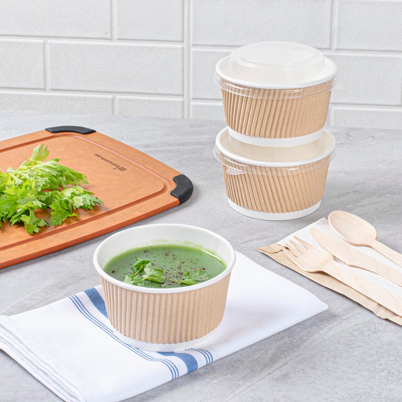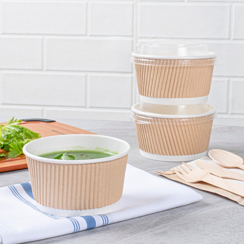 - RIPPLE WALL DESIGN: Maintain integrity with every serving! These PE lined paper soup containers feature a ripple wall that provides added strength and insulation. Keep soups and stews steaming hot!
