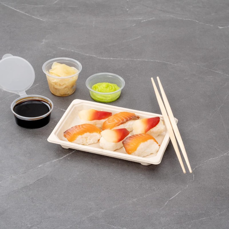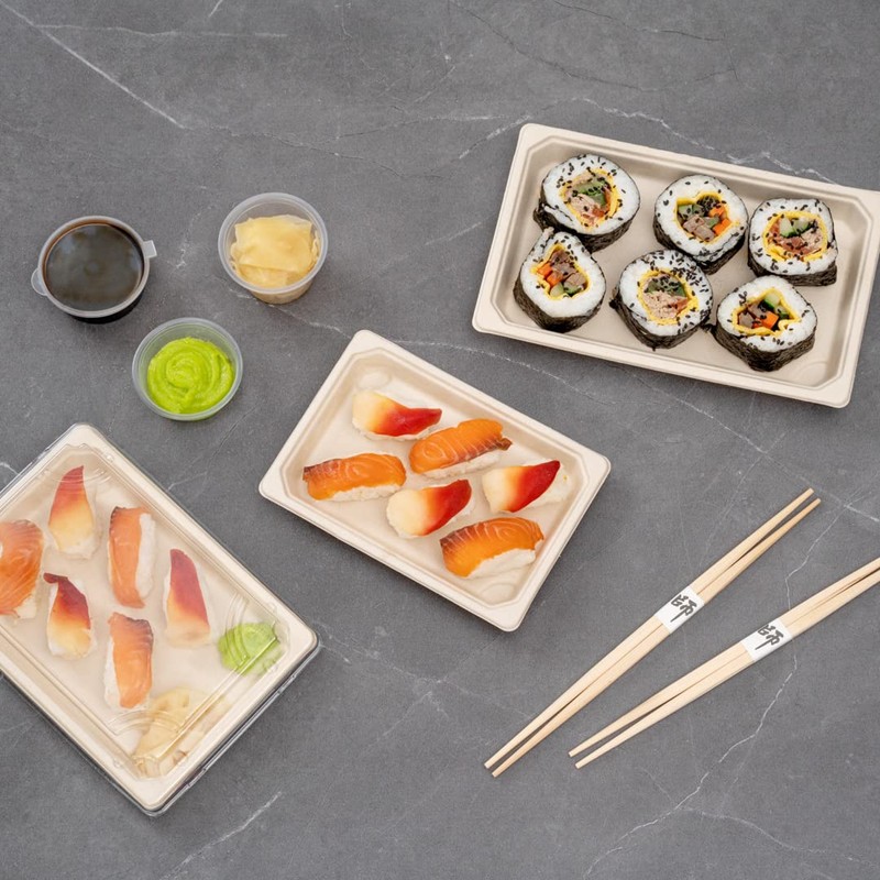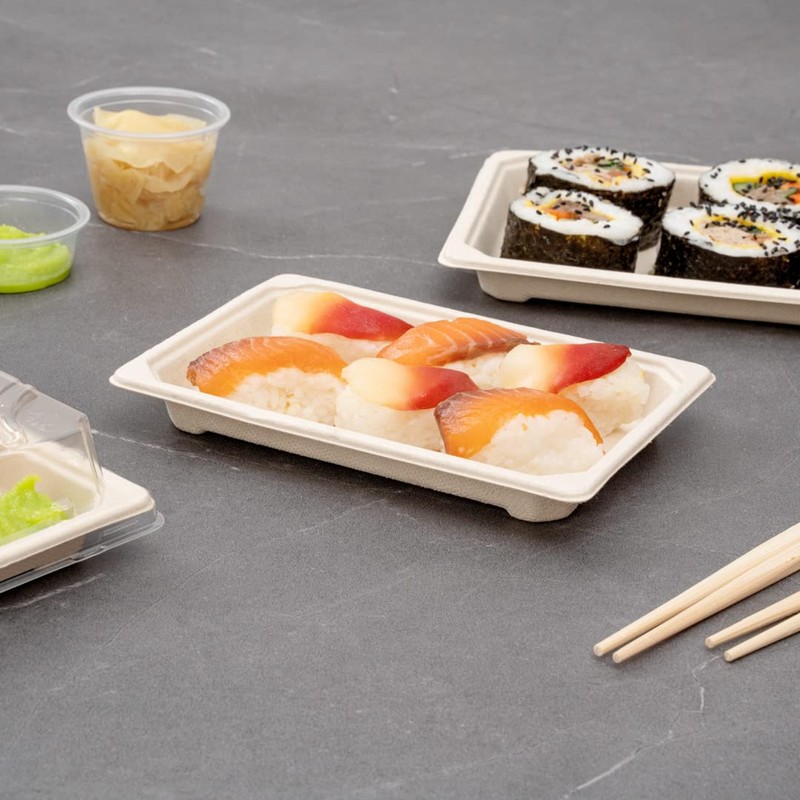 - 100 BAGASSE PLATES PER ORDER: These bagasse sushi plates measure 6.5 inches long by 4.5 inches wide. Don't worry about running out of stock, each order includes 100 plates.