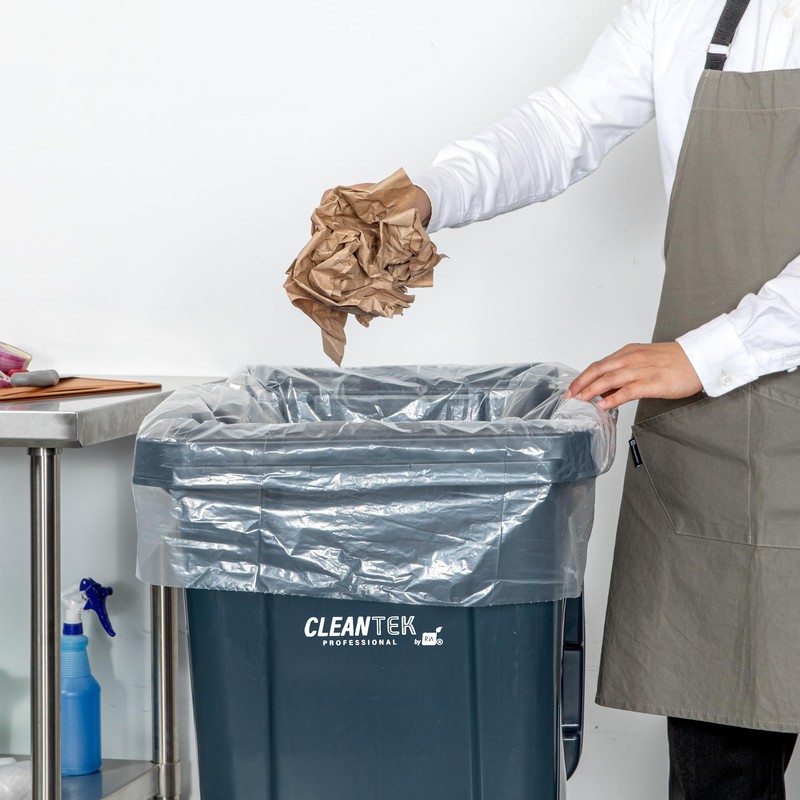 Restaurantware-RW Clean, 55 Gallon Trash Bags, 100, Light-Duty Garbage Can Liners- Fits 55-60 Gallon Trash Cans, Stretchable, Clear, Plastic, Bin liners with Star Seal Bottom,