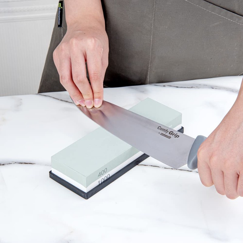 - PRECISELY SHARPEN: Featuring a two-sided grit, this kitchen knife whetstone lets you sharpen knives with precision. The 400 grit is for basic sharpening and the 1000 grit is for a super fine finish.