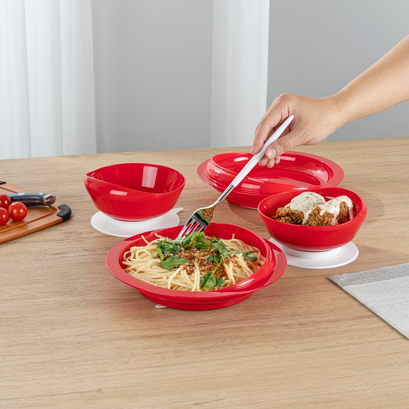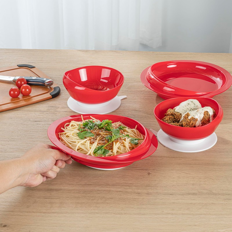 - STIMULATING RED COLOR: The vibrant red color of this adaptive dinnerware set encourages appetite and makes meals more appealing for individuals with cognitive challenges. Designed to enhance focus!