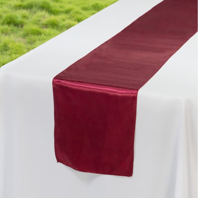 • STYLISH DESIGN: Featuring a satin weave, this table runner has a silky appearance that catches the attention of your guests. Plus, the dark burgundy finish easily matches your tablescape.