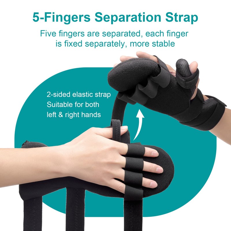 Resting Hand Splint, Stroke Rest Hand Splint, Night 5 Finger Sleep Support, F...