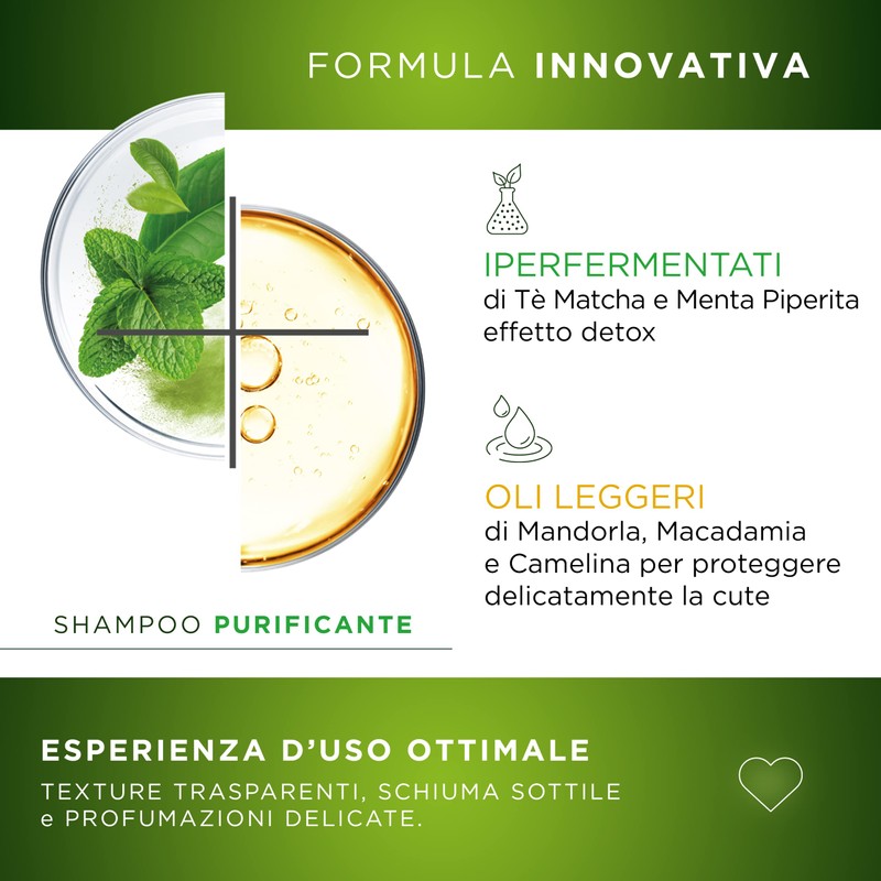- The formula gently cleanses the hair and scalp. Enriched with Hyperfermented Actives of Matcha Tea and Peppermint, it helps keep the scalp healthy and hair fresh and thoroughly cleansed, light and purified throughout the day